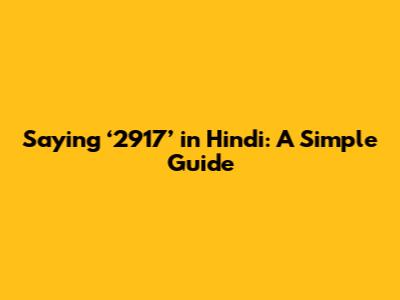 Saying '2917' In Hindi: A Simple Guide