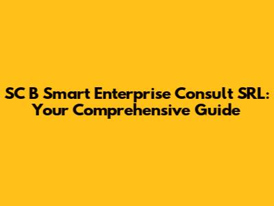 Hey guys! Ever heard of SC B Smart Enterprise Consult SRL and wondered what they're all about? Well, you've come to the right place! This article is your go-to guide for understanding everything about this company. We'll dive into what they do, why they matter, and how they can potentially help your business thrive. So, buckle up and let's get started!
