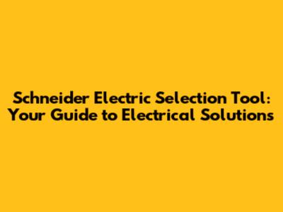 How to Use the Schneider Electric Selection Tool: A Step-by-Step Guide