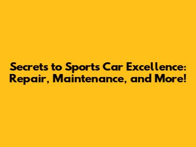 Secrets To Sports Car Excellence: Repair, Maintenance, And More!