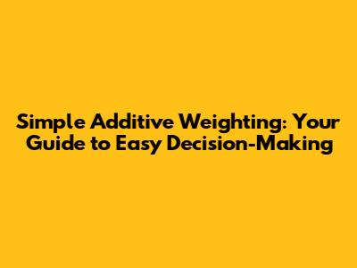 Simple Additive Weighting: Your Guide To Easy Decision-Making