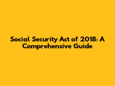 Social Security Act Of 2018: A Deep Dive