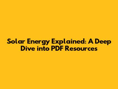 Solar Energy Explained: A Deep Dive Into PDF Resources