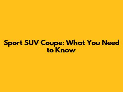 Sport SUV Coupe: What You Need To Know