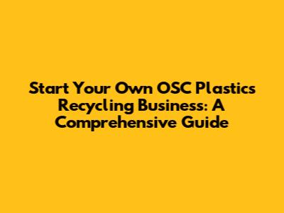 Start Your Own OSC Plastics Recycling Business