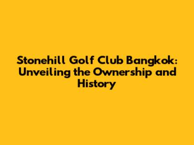 Stonehill Golf Club Bangkok: Ownership & History Unveiled