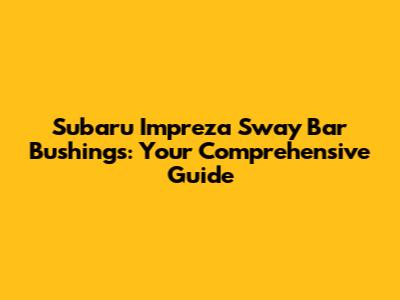 Hey car enthusiasts! Ever felt like your Subaru Impreza wasn't handling quite right? Maybe it's a bit loose in the corners, or you hear some clunking sounds when going over bumps. One of the common culprits behind these issues could be your Subaru Impreza sway bar bushings. Don't worry, guys, it's not the end of the world! This guide will break down everything you need to know about these essential components, from what they do to how to replace them and even upgrade to some beefier options. Let's dive in!