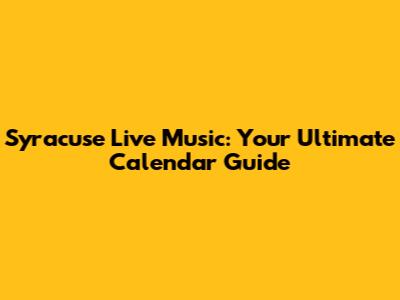 Syracuse Live Music: Your Ultimate Calendar Guide