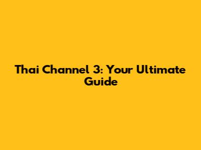 Thai Channel 3: Your Ultimate Guide