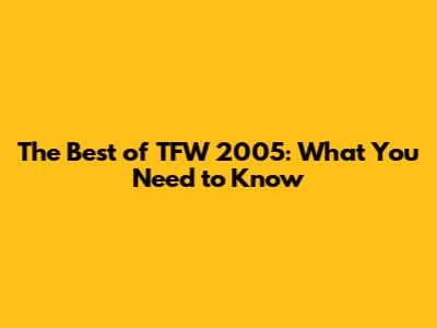 The Best Of TFW 2005: What You Need To Know