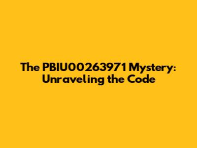 The PBIU00263971 Mystery: Unraveling The Code