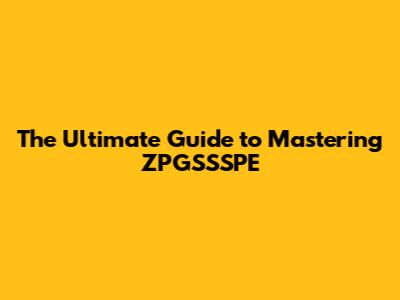 The Ultimate Guide To Mastering ZPGSSSPE