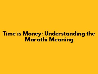 Time Is Money: Understanding The Marathi Meaning