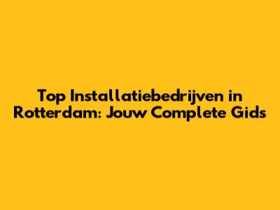 Top Installatiebedrijven In Rotterdam: Jouw Complete Gids