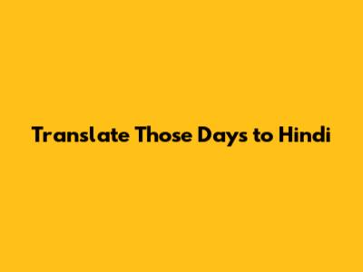 Translate Those Days To Hindi