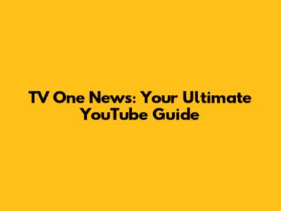 TV One News YouTube Channel Guide