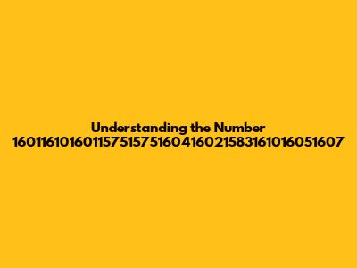 Given the nature of the number 16011610160115751575160416021583161016051607, let's consider some potential meanings and interpretations across various fields. Without specific context, these are educated guesses, but they highlight the range of possibilities: