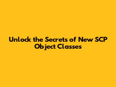 Unlock The Secrets Of New SCP Object Classes
