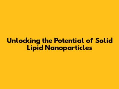 Unlocking The Potential Of Solid Lipid Nanoparticles