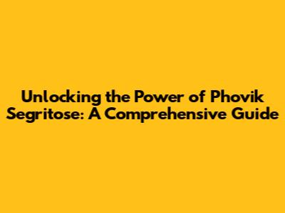 Unlocking The Power Of Phovik Segritose: A Comprehensive Guide