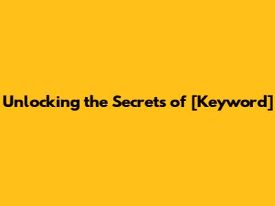 Unlocking The Secrets Of [Keyword]