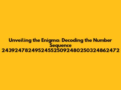 Hey everyone! Ever stumbled upon a really long string of numbers and wondered, 'What in the world is that?' Well, today we're diving headfirst into the fascinating world of number sequences, specifically tackling the mammoth sequence: 243924782495245525092480250324862472. This isn't just a random jumble of digits, guys. There's often a hidden pattern, a secret code, or perhaps a significant meaning waiting to be uncovered. Let's embark on this numerical adventure together! Figuring out sequences can be like solving a puzzle; it involves looking for repeating patterns, mathematical operations, or even the application of complex algorithms. The goal here is to crack the code, determine the underlying structure, and if possible, understand the meaning behind it. Sometimes, these sequences can relate to significant scientific data or encryption to protect sensitive data. So, let's break down this beast of a number and see what we can find. I'm excited to explore this with you and see what we can discover together. Keep in mind that a single number sequence can have numerous meanings depending on the context in which it's used. This sequence could represent anything from a unique identifier or a code within a data stream. We will look at a few examples, as well as several different types of potential sequences that can be used.