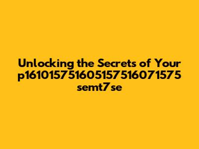 Unlocking The Secrets Of Your P161015751605157516071575 Semt7se