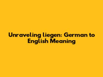 Hey guys! Ever stumbled upon a German word and thought, "What on earth does that even mean?" Well, you're in luck because today, we're diving deep into the versatile German verb 'liegen'. This word is super common in German, and understanding its nuances is key to really grasping the language. So, what does 'liegen' actually mean in English? The most straightforward translation is 'to lie', as in to be in a horizontal position or to be situated. But trust me, it's so much more than just that! We'll explore its various uses, from describing physical locations to more abstract concepts. Get ready to become 'liegen' pros, because by the end of this, you'll be using it like a native!