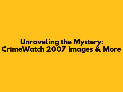 Unraveling The Mystery: CrimeWatch 2007 Images & More