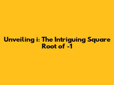 Unveiling 'i': The Intriguing Square Root Of -1