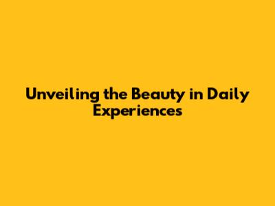 Unveiling The Beauty In Daily Experiences