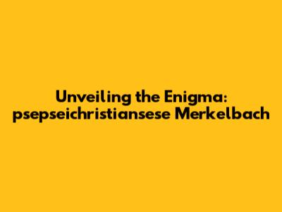 Unveiling The Enigma: Psepseichristiansese Merkelbach