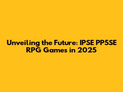 Unveiling The Future: IPSE PP5SE RPG Games In 2025
