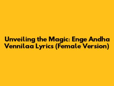 Unveiling The Magic: 'Enge Andha Vennilaa' Lyrics (Female Version)