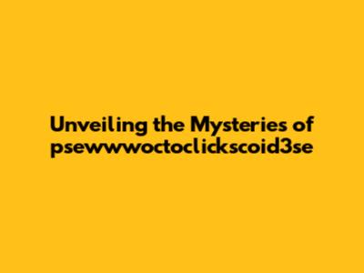Unveiling The Mysteries Of Psewwwoctoclickscoid3se