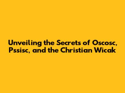 Unveiling The Secrets Of Oscosc, Pssisc, And The Christian Wicak