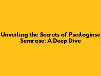 Unveiling The Secrets Of Pseiloginse Semrase: A Deep Dive