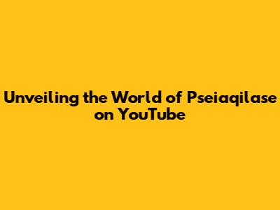 Unveiling The World Of Pseiaqilase On YouTube