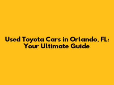 Used Toyota Cars In Orlando, FL: Your Ultimate Guide