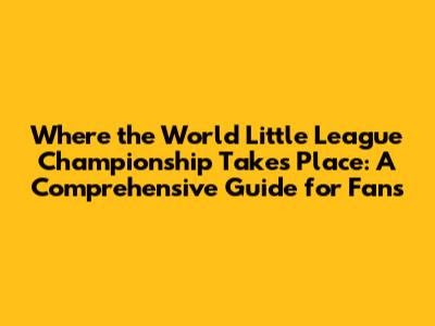 Where the World Little League Championship Takes Place: A Comprehensive Guide for Fans