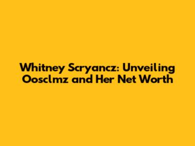 Let's dive into Whitney Scryancz and her association with Oosclmz, exploring her net worth and background. Maybe you're curious about who she is, how she made her money, or what Oosclmz is all about. Well, you've come to the right place! This article will break it all down in a way that's easy to understand, even if you're not a financial whiz.