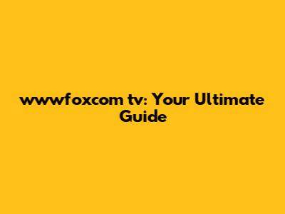 Wwwfoxcom Tv: Your Ultimate Guide