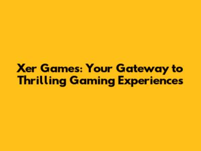 Xer Games: Your Gateway To Thrilling Gaming Experiences