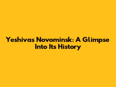 Yeshivas Novominsk: A Glimpse Into Its History