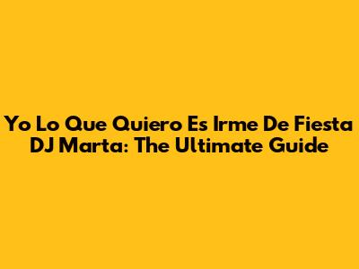 Yo Lo Que Quiero Es Irme De Fiesta DJ Marta: The Ultimate Guide