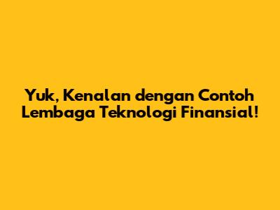 Yuk, Kenalan Dengan Contoh Lembaga Teknologi Finansial!